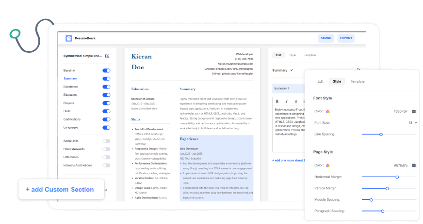 Our online resume builder empowers you to create a polished, recruiter-approved resume—quickly and effortlessly. Whether you're starting fresh or optimizing an existing one, our intuitive editor and professional templates help you showcase your skills with impact.